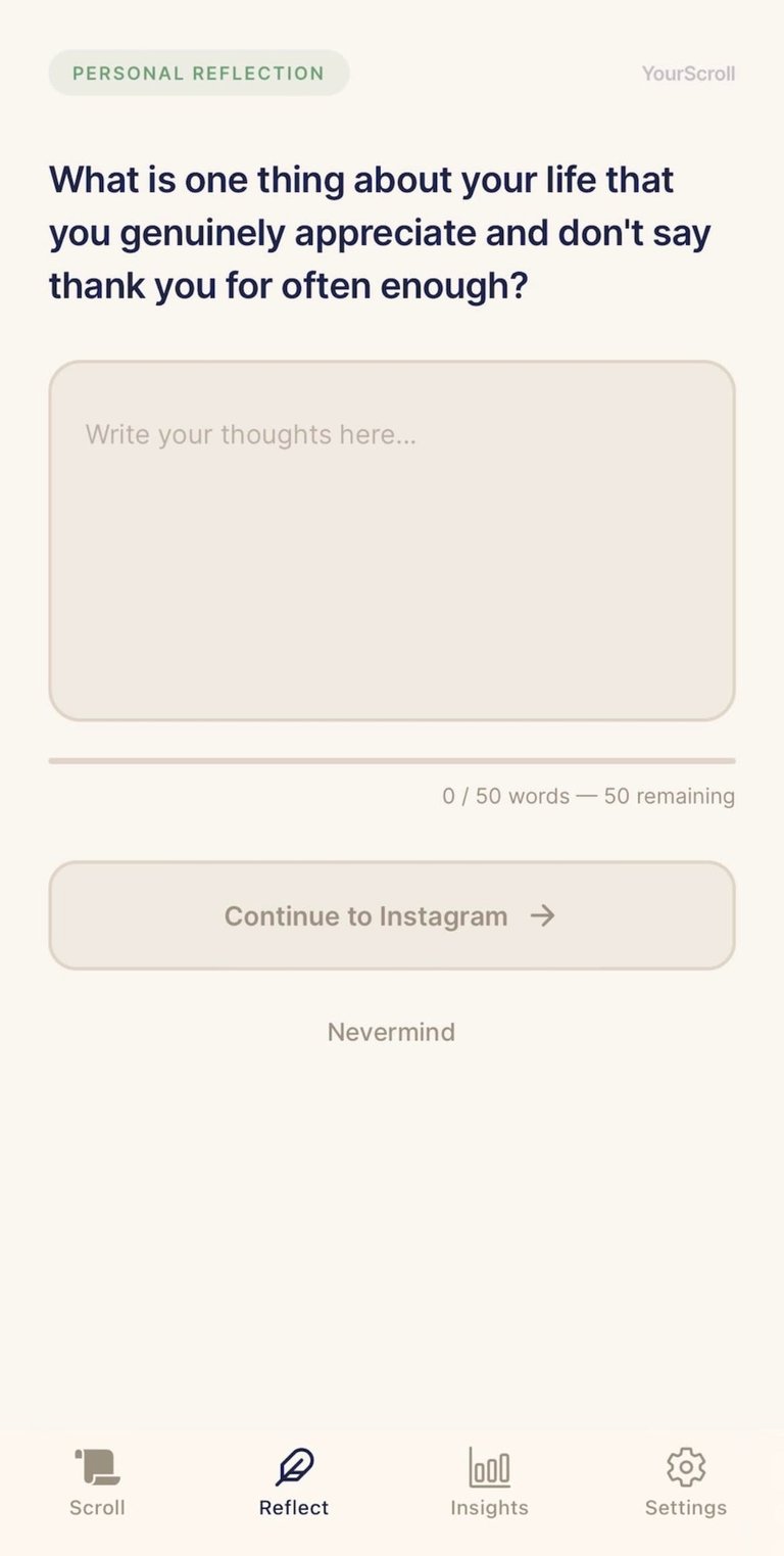 Once you have YourScroll set up, you will be automatically redirected to the app when you open the social media apps you selected.
